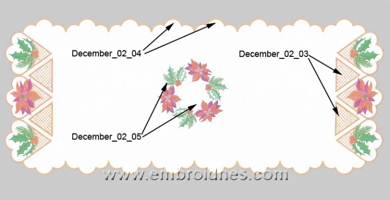 December table runner machine embroidery design is approximately 14 by 32 inches. For this project you will need to have 20 by 38 inches linen fabric prewashed and pressed.