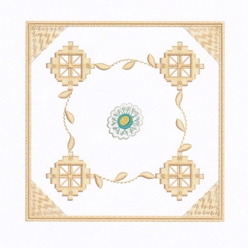 Vanessa_01_01. 136780 stitches, 144.1 mm x144.2 mm. Hoop two layers of water-soluble (Vilene) stabilizer. Place your fabric (8 by 8 inches) on center and start embroidery: